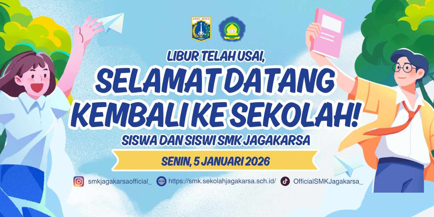 Selamat datang kembali di SMK Jagakarsa untuk seluruh rekan-rekan siswa. Jangan lupa siapkan seragam dan perlengkapanmu ya, kita ketemu lagi Senin, 5 Januari 2026. Letβs make this semester amazing! π₯"